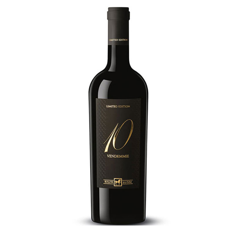 Rượu vang 10 Vendemmie Tenuta Ulisse Limited Edition là phiên bản giới hạn làm từ 100% nho Montepulciano phối trộn theo phương pháp Solera, bằng cách chọn các mẻ rượu ngon từ 10 niên vụ khác nhau. Về hình thức, 10 Vendemmie Limited Edition dễ dàng gây ấn tượng cho người dùng từ cái nhìn đầu tiên. Chai vang được thiết kế mang đậm nét văn hóa tại vùng Abruzzo.